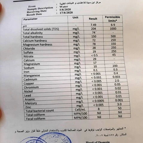 The last photo shows the analysis which is provided by The National Research Center in Egypt for the water which was placed above the copper pyramid. The percentage of toxic and chemical elements is very small compared to the international standards.